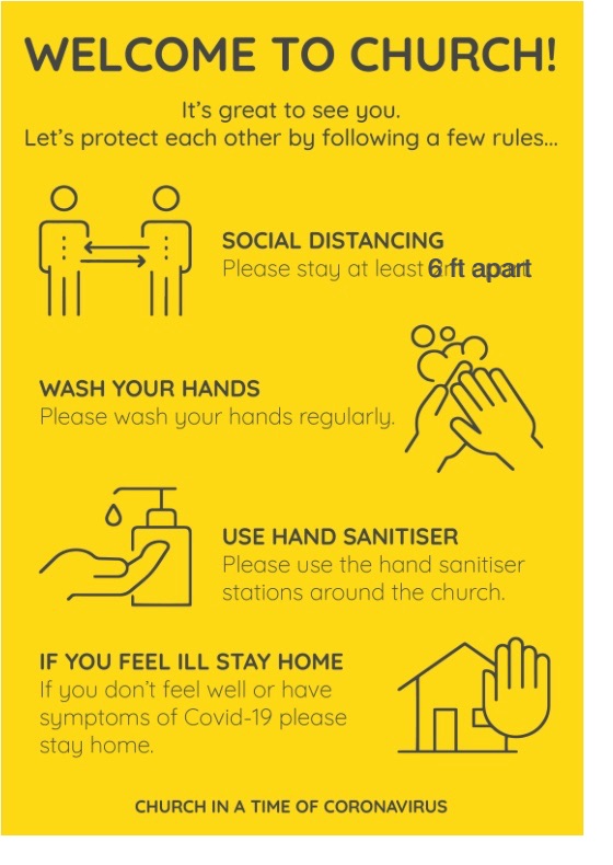Seating in the Sanctuary will look very different. The pews will be marked with a sticker indicating where you can sit. Please keep in mind that you may not be able to sit in the pew you are accustomed to and that your seat may change from week to week.